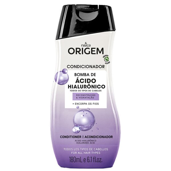 O ORIGEM CONDICIONADOR BOMBA DE ÁCIDO HIALURÔNICO entrega condicionamento e uma explosão de benefícios para seus cabelos, tudo isso porque sua fórmula é exclusiva e conta com o poderoso Acido Hialurônico, Vitamina C e D'pantenol, que formam um filme protetor, recupera a fibra capilar, preenche e retém a água dos fios, deixando-os hidratados, macios e com brilho. Além de devolver vitalidade e beleza aos cabelos. Faz parte do tratamento ideal para uma reconstrução intensiva.