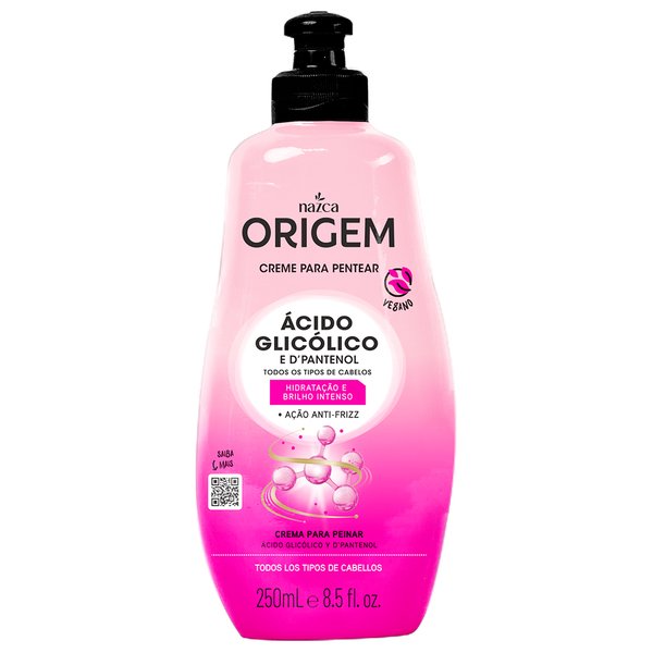 O ORIGEM CREME PARA PENTEAR ÁCIDO GLICÓLICO E D’PANTENOL entrega uma profunda hidratação e brilho para seus cabelos e facilita o desembaraço, tudo isso porque sua fórmula é enriquecida com Àcido Glicólico e D’Pantenol, que reduz o frizz e a porosidade, alinhando os fios deixando seus cabelos ainda mais macios, sedosos e com brilho.