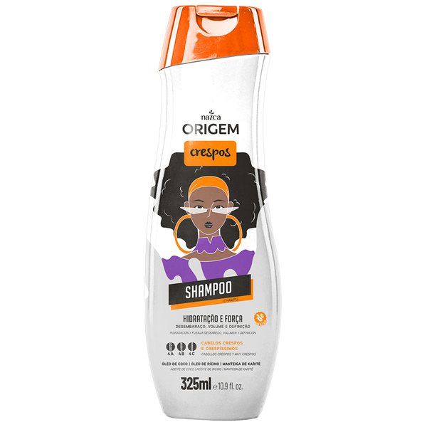 Modo de uso: Aplique o shampoo nos cabelos molhados e massageie suavemente. Em seguida, enxágue bem e repita a aplicação, se necessário. Para melhores resultados, utilize a linha origem fun crespos completa