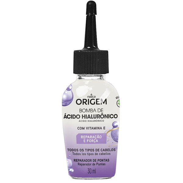 O ORIGEM REPARADOR DE PONTAS BOMBA DE ÁCIDO HIALURÔNICO entrega uma explosão de benefícios para seus cabelos, tudo isso porque sua fórmula é exclusiva e conta com o poderoso Acido Hialurônico, Vitamina C e D'pantenol, que formam um filme protetor, deixando-os hidratados, macios e com brilho.