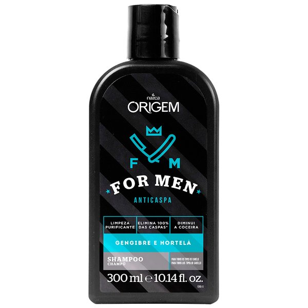 Modo de uso: aplique o origem for men shampoo anticaspa nos cabelos molhados e massageje suavemente até formar espuma, em seguida, enxague bem e repita a aplicação, se necessário.